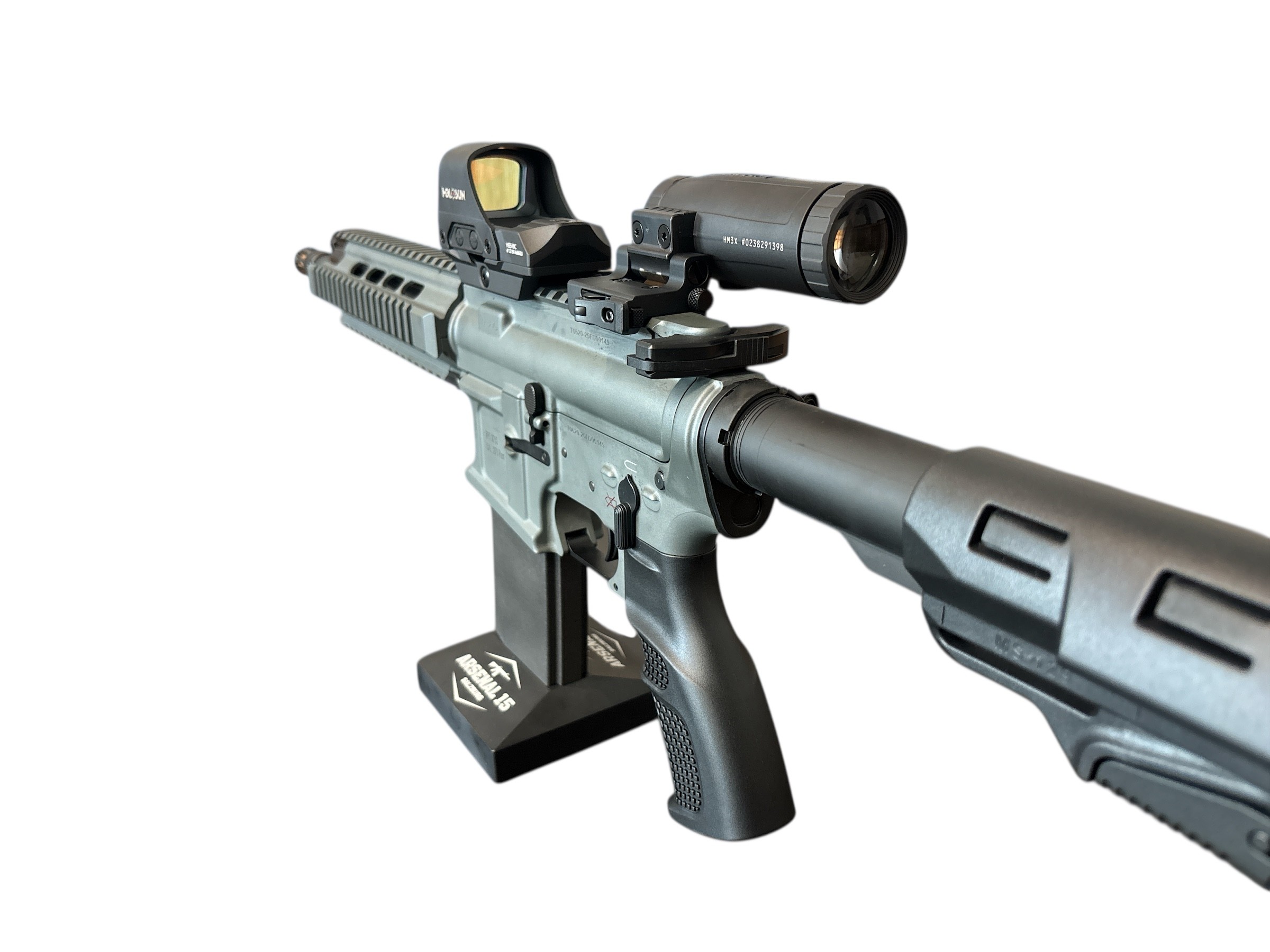 Der Hinterschaft ist teleskopierbar und ist mit einem QD-Anshluss für Slings ausgestattet. Das Buffertube ist milspec. und mit jedem Schaft aus dem Zubehör kombinierbar.