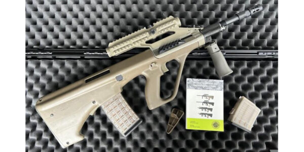 Das Steyr AUG A3 Z QCB/SR 3×-Optik JAGDKOMMANDO 417 RAL7013 ist ein halbautomatisches Bullpup-Gewehr im Kaliber .223 Remington (5,56 × 45 mm NATO). Das Gehäuse besteht aus einer robusten Aluminiumlegierung mit einem Polymerschaft im Bullpup-Design, wodurch eine Gesamtlänge von ca. 79 cm bei einer Lauflänge von 50,5 cm (20 Zoll) erreicht wird. Das QCB-Schnellwechselsystem erlaubt werkzeugloses Entfernen und Ersetzen des Laufs, während das SR-Konzept den Einsatz von Schalldämpfern ohne Präzisionsverlust ermöglicht. Ab Werk ist eine 3×-Zieloptik auf einer voll einstellbaren Picatinny-Schiene montiert. Die Visierung umfasst einen beidseitig bedienbaren Ladehebel und einen entnehmbaren 30 + 1-Schuss-Magazintrichter für STANAG-Magazine. Der ergonomische Polymer-Pistolengriff und der höhenverstellbare Schaft mit integrierter Wangenauflage sorgen für komfortables Handling. Die JAGDKOMMANDO-417-Oberfläche in RAL 7013 Tarngrün bietet eine kratz- und korrosionsfeste Cerakote-Beschichtung für verbesserte Tarnung und Witterungsbeständigkeit. Mit einem Gewicht von ca. 3,9 kg ist das AUG A3 Z kompakt, wendig und ideal für jagdliche Einsätze.