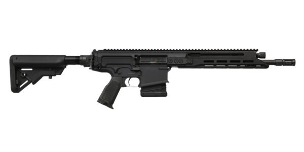 Das Steyr DMR 762 STL407/STL330 ist ein halbautomatisches Präzisionsgewehr im Kaliber .308 Winchester (7,62×51 mm NATO) mit einem kaltgehämmerten Lauf von wahlweise 330 mm oder 407 mm Länge. Die Waffe verfügt über ein gasbetriebenes Piston-System und erreicht eine Sub-MOA-Präzision. Der klappbare AR-15-kompatible Schaft ist in sechs Stufen um bis zu 82 mm längenverstellbar, was die Transportfähigkeit erhöht. Das Gehäuse besteht vollständig aus Aluminium; das Gewicht liegt je nach Konfiguration bei etwa 3,9 kg. Der beidseitig bedienbare Spannschieber kann werkzeuglos von rechts auf links umgebaut werden und dient auch als Schließhilfe. Die Waffe verfügt über eine lange Picatinny-Schiene sowie M-LOK-Schnittstellen auf 3, 6 und 9 Uhr zur Montage von Zubehör. Das Mündungsgewinde ist 5/8-24 UNEF mit einem Drall von 1:12″. Der Halbautomatik-Abzug ist mit „Drop-In“-Abzugsgruppen für AR10-Systeme kompatibel, und die seitliche Schiebesicherung ist beidhändig bedienbar. Die Magazinkapazität beträgt 10 oder 20 Schuss. Die Gesamtlänge variiert je nach Lauflänge zwischen 815 mm und 992 mm. Die Waffe eignet sich für sportliches Schießen, taktische Anwendungen und den jagdlichen Einsatz.