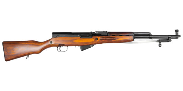 Das Simonow SKS-45 ist ein sowjetischer halbautomatischer Karabiner, der 1944 von Sergei Gawrilowitsch Simonow entwickelt wurde. Die hier beschriebene Variante ist Arsenalware aus russischer Fertigung, die sich durch einen überholten Zustand mit leichten Lager- und Transportschäden auszeichnet. Die Waffe ist komplett nummerngleich und wurde mit dem originalen Lehrensatz vermessen sowie beim staatlichen Beschussamt CIP-beschossen. Sie verfügt über ein gefrästes Gehäuse und eine gefräste Abzugsgruppe, ein fest verbautes 10-Schuss-Magazin und ein Klappbajonett, das für den sportlichen Einsatz gemäß BKA-Feststellungsbescheid entfernt werden muss. Mit einer Gesamtlänge von 1020 mm, einer Lauflänge von 520 mm und einem Gewicht von etwa 3,85 kg ist die SKS-45 robust und zuverlässig.